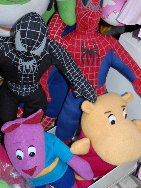 Integrante imitando la pose de un Power Ranger, con algún Power Ranger de fondo