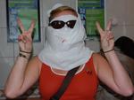 Extraño con un cartel en la espalda que diga "pegue aquí"
