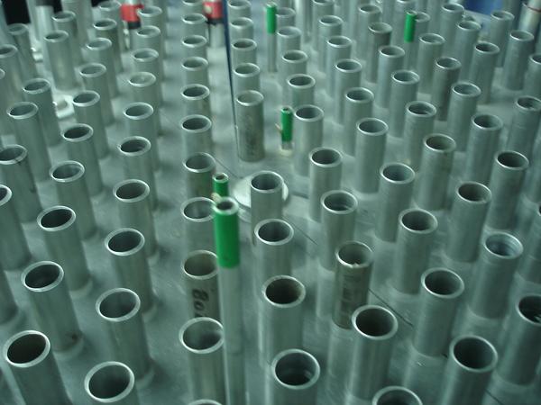 Una unidad de combustible para el reactor. Cada tubito esta relleno de pastillas de uranio. El reactor contiene muchas de estas unidades.
