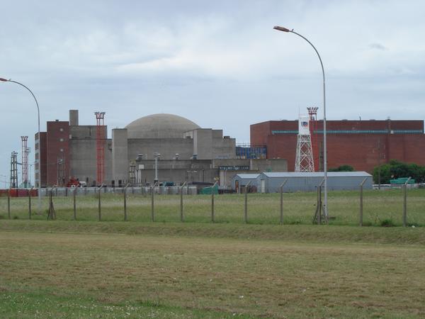 Atucha I vista desde lejos.