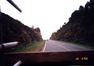 El Abra es el cordon rojizo por el que pasa la ruta, se dinamito el
